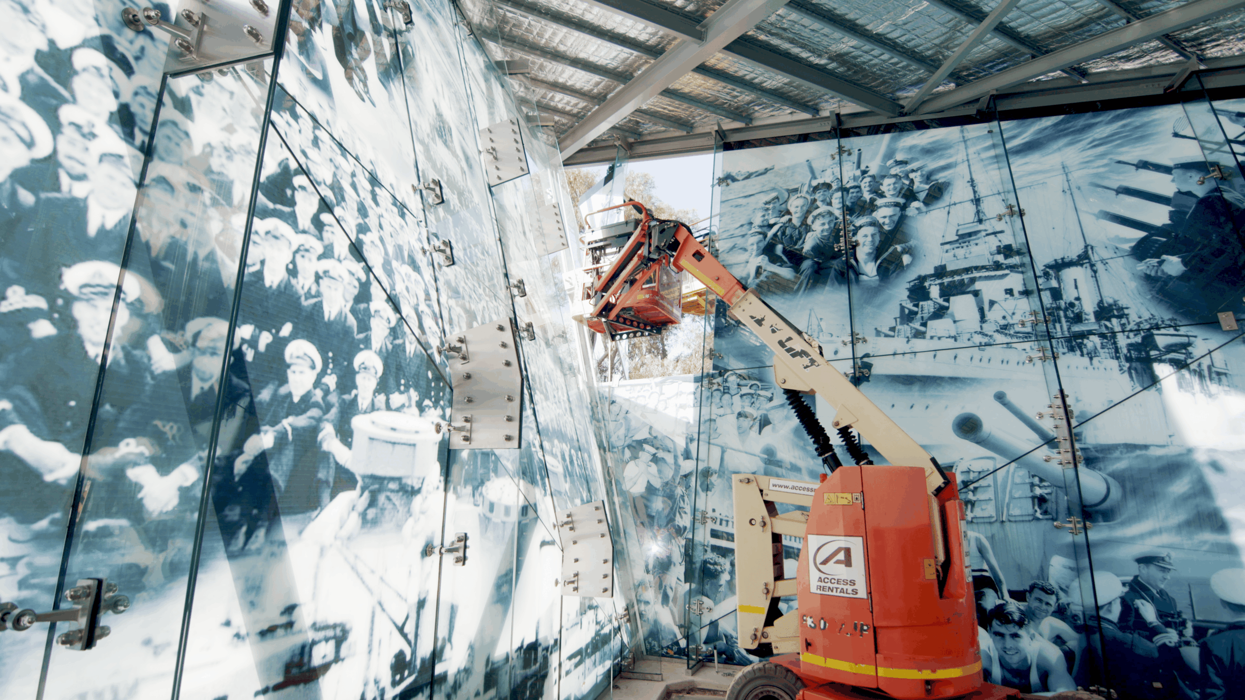 Tra i numerosi progetti di successo realizzati, va sicuramente menzionato il memoriale HMAS Perth (I) che si distingue per dimensioni e importanza. Si tratta di un’installazione straordinaria a forma di prua di nave: il progetto, che ha richiesto anni di pianificazione e una stretta collaborazione con stakeholder esterni, ha messo alla prova tutte le competenze e le capacità di Cooling Brothers, dalla progettazione artistica alla complessa laminazione e stampa digitale. Inaugurato nella primavera del 2025, è stato un’opportunità per dimostrare non solo le capacità della tecnologia FOREL, ma anche la maestria e la competenza del team di Cooling Brothers. Il vetro è il protagonista, come tela per la narrazione visiva, fondendo scene di battaglia con ritratti dell’equipaggio per connettere emotivamente i visitatori con la storia della nave. Il risultato è un tributo storico in vetro che incarna rispetto, resilienza e onore nazionale.