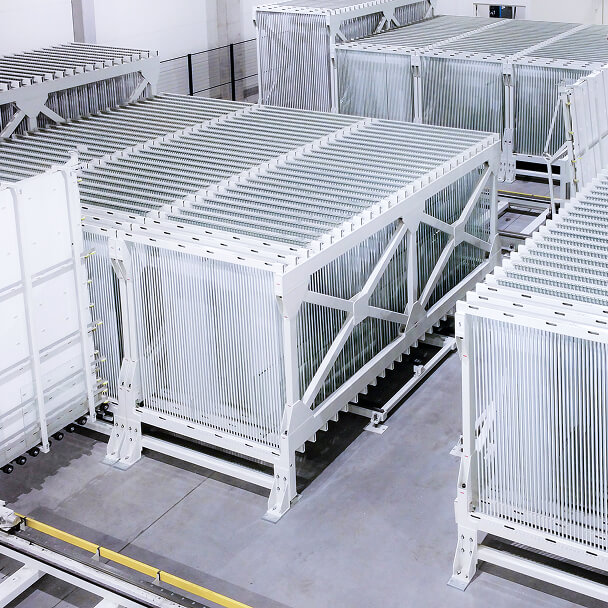 Our sorting system connects the various stages of glass processing into an integrated and fully automated flow. It is ideal for optimizing space, increasing operator safety, and improving production efficiency, even in high-volume plants. With automatic panel identification and direct connection to the vertical storage, we eliminate interruptions due to changes in size or thickness.